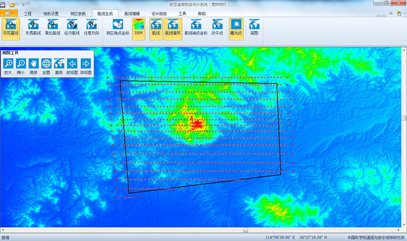 飞行计划软件根据相机参数、测区范围及地形数据和航摄任务技术参数,进行自动航线敷设和曝光点生成,其具有以下优点: