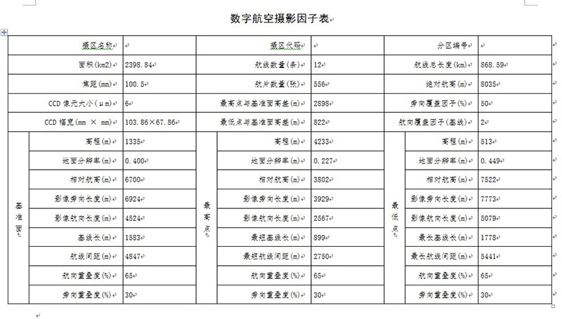 2. 支持航摄因子计算表自动生成,以用于快速查看基准面、最低点和最高点航摄参数;