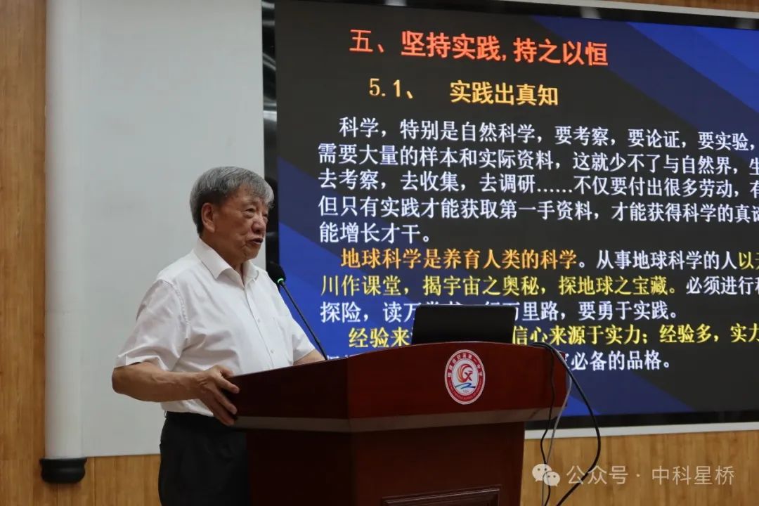 刘嘉麒院士,作为火山地质与第四纪地质学家,从事地质工作60多年,以脚步丈量世界,以心血浇灌研究,演讲期间还特别提到“地球科学”,为学生们科普作为人类生存的基础学科“地球科学”的重要性,激发起广大学生的学习热情。