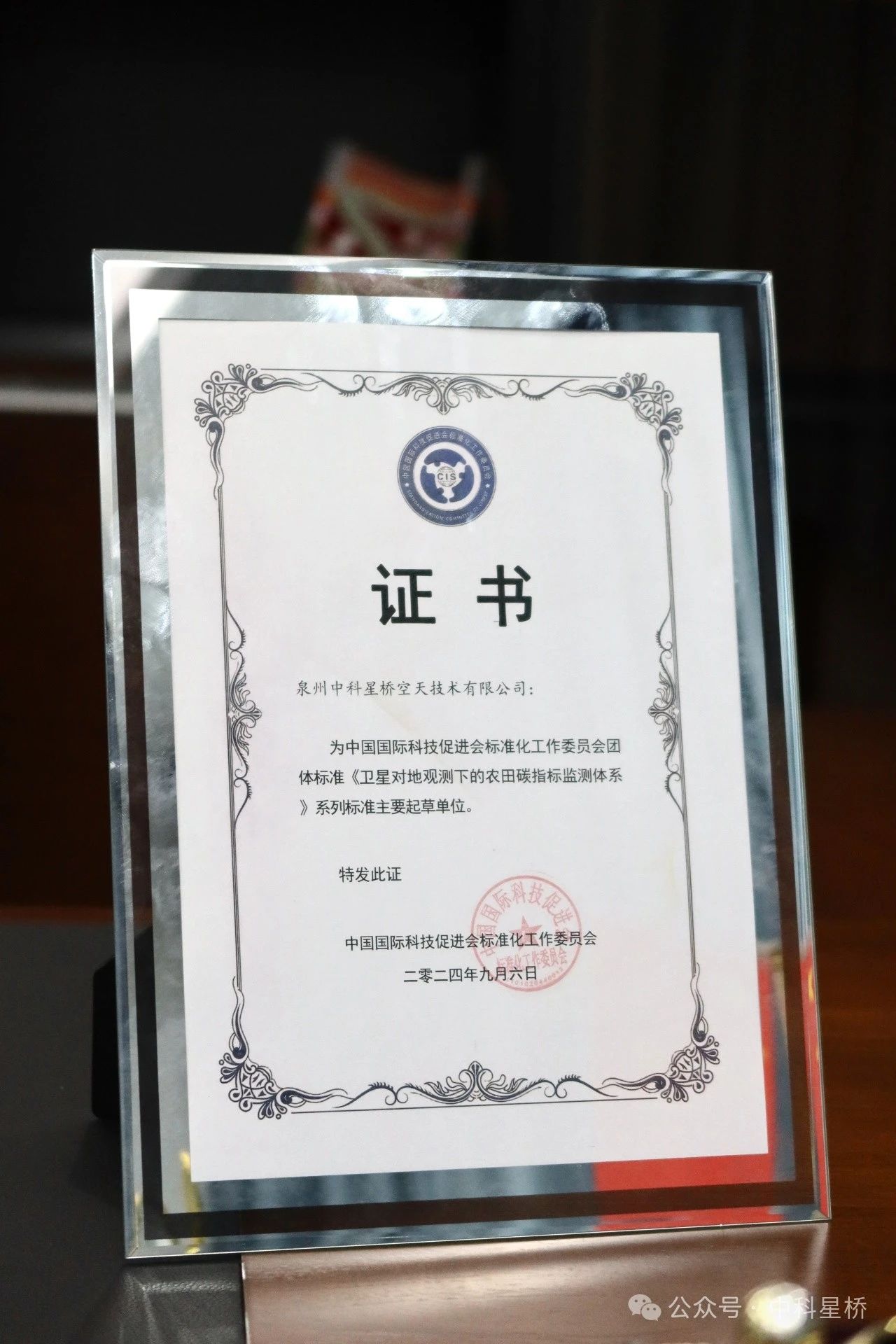 泉州中科星桥空天技术有限公司被列为中国国际科技促进会标准化工作委员会团体标准《卫星对地观测下的农田碳指标监测体系》系列标准主要起草单位。