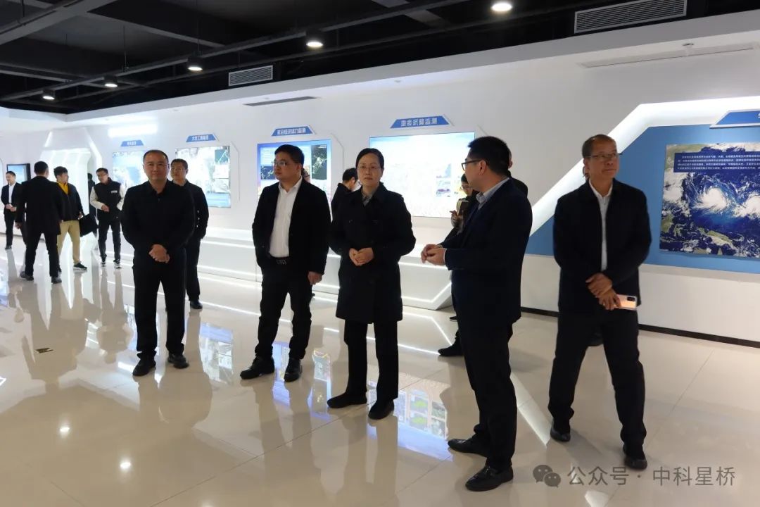 汪志红一行先后参观了福建省“十四五”规划数字福建专项规划重点项目——中科星桥全球商业遥感卫星地面接收站网福建站一期工程、空天大数据展厅、卫星运控中心、空天数据处理中心、GIS应用创新中心、院士工作站,并对空天大数据产业链条建设、高分辨率商业遥感卫星“星座计划”实施成果、空天大数据创新应用场景等建设成果进行了详细了解和交流。