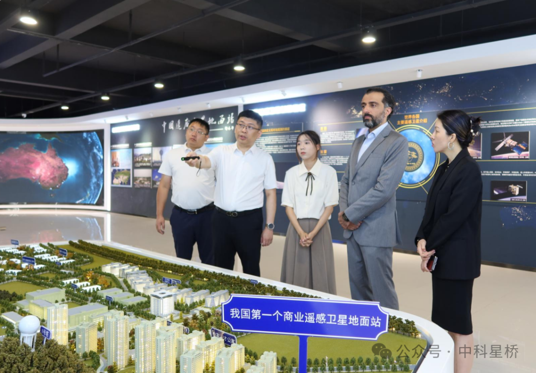 在中科星桥董事长尹大利的陪同下,Multi Gold集团主席实地参观了中科星桥全球商业遥感卫星地面接收站网·福建站一期工程、空天大数据展厅、卫星运控中心及空天数据处理中心等场馆和设施。考察团详细了解了中科星桥在空天地一体化建设、高分辨率商业遥感卫星全球组网“星座计划”、“卫星+AI”场景应用、GIS模型研发、全息数字城市建设等相关领域的科技成果与全链条服务能力。