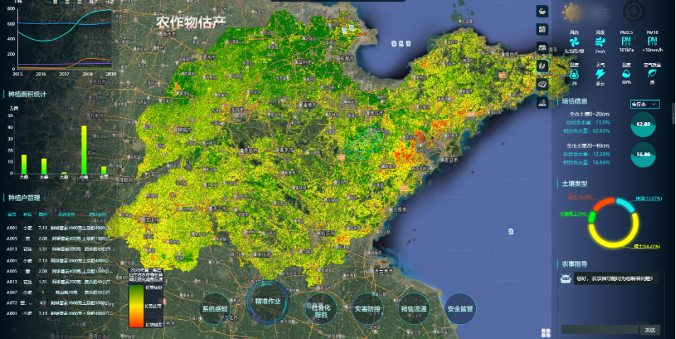 遍布田间的土壤墒情、气象、虫情等物联网传感器,构成了感知网络的“神经末梢”,提供7×24小时不间断的实时地面数据,验证并校准“星-空”遥感观测结果,确保决策的准确性。